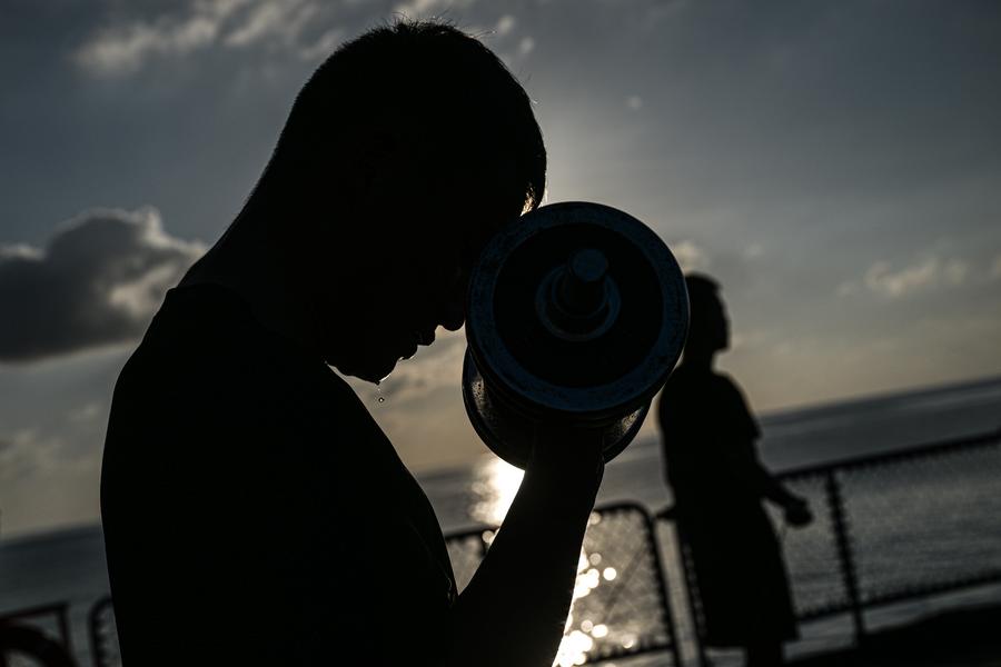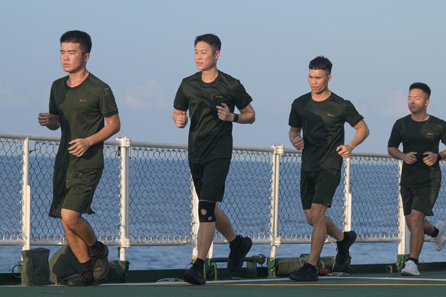 A law enforcer exercises on China Coast Guard vessel Huayang patrolling the waters of China's Ren'ai Jiao, April 23, 2024. (Xinhua/Pu Xiaoxu)