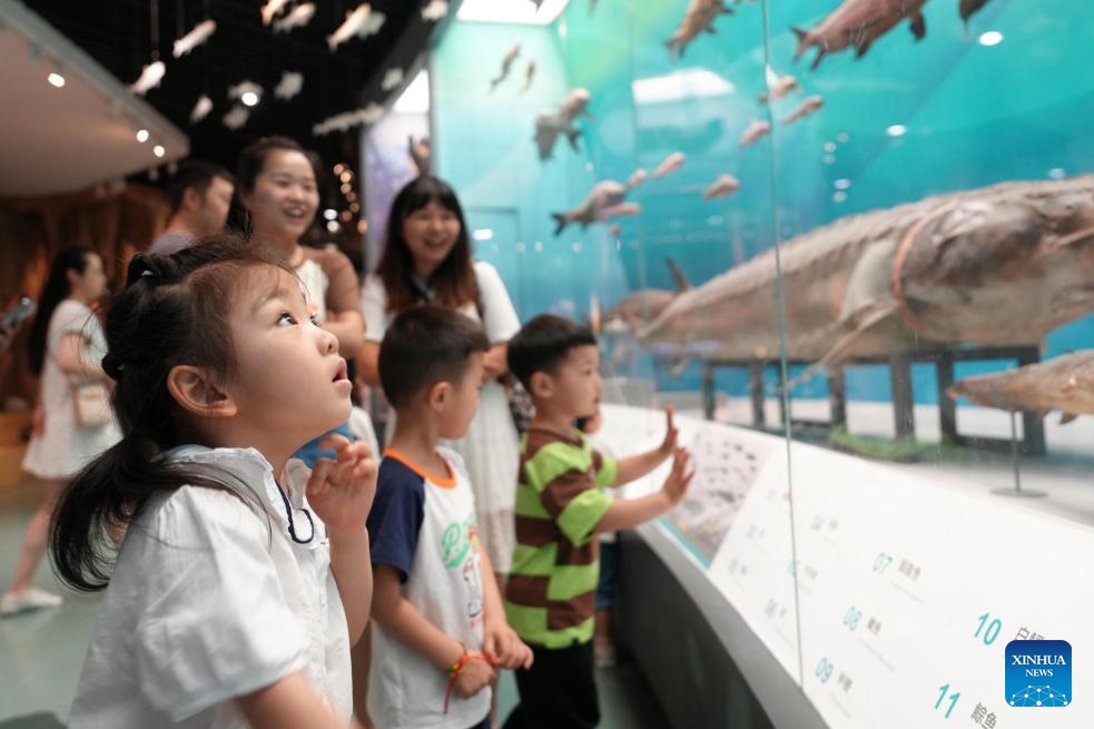 Children visit Chongqing Natural History Museum in southwest China's Chongqing Municipality, June 9, 2024. People enjoy the 3-day holiday of the Dragon Boat Festival, also called Duanwu Festival, which falls on June 10 this year, via various activities across the country. (Photo by Qin Tingfu/Xinhua)