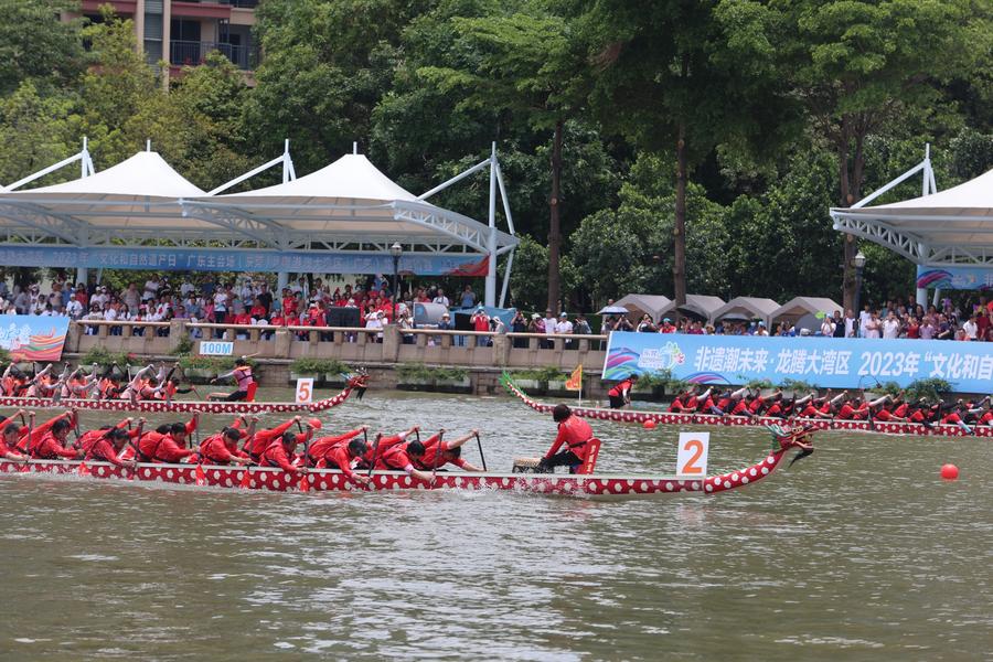 GUANGZHOU, June 10 (Xinhua) -- Feng Lijuan is a banana farmer, Guo Yanting is a stay-at-home mom, and He Guangqun is a barista. Though the three women are in different age groups and lead different lives, they join together every year to compete as a dragon boat racing team.