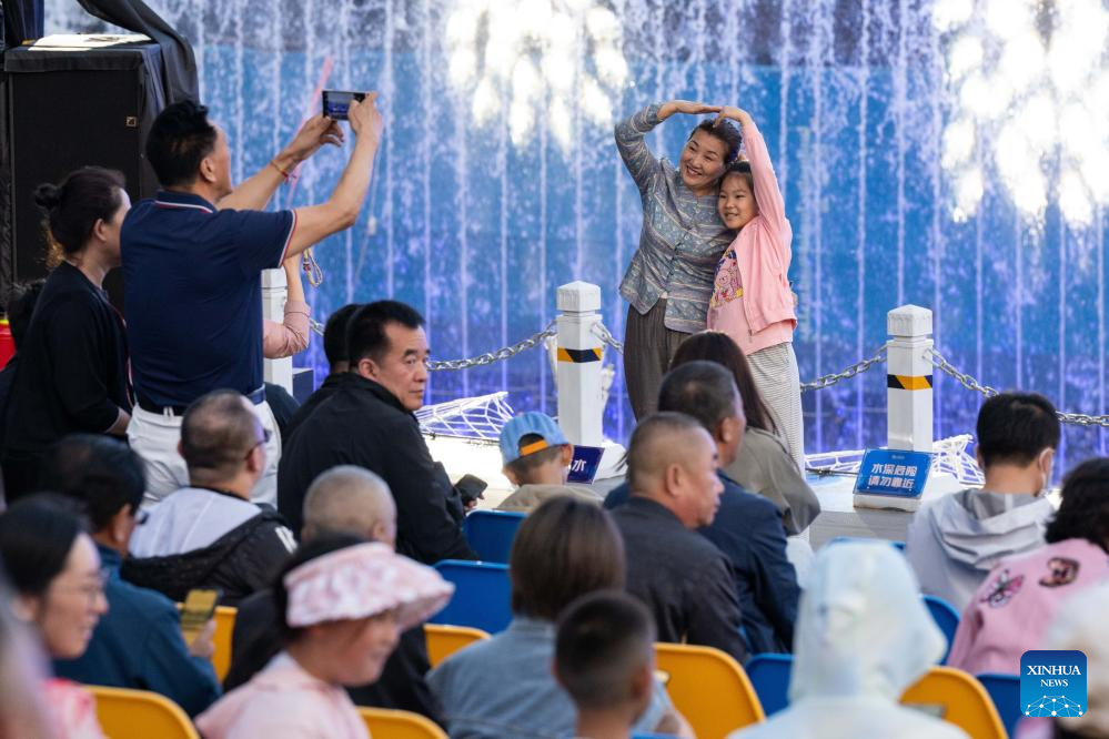 Audience pose for photos before the staging of live-action performance "Encounter Harbin" at Sun Island scenic spot in Harbin, northeast China's Heilongjiang Province, June 10, 2024. (Xinhua/Xie Jianfei)