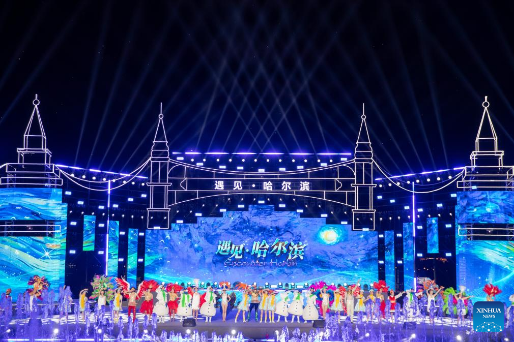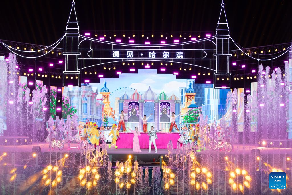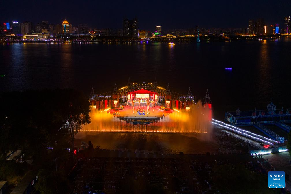 The live-action performance "Encounter Harbin" is staged at Sun Island scenic spot in Harbin, northeast China's Heilongjiang Province, June 10, 2024. (Xinhua/Zhang Tao)