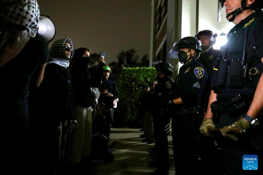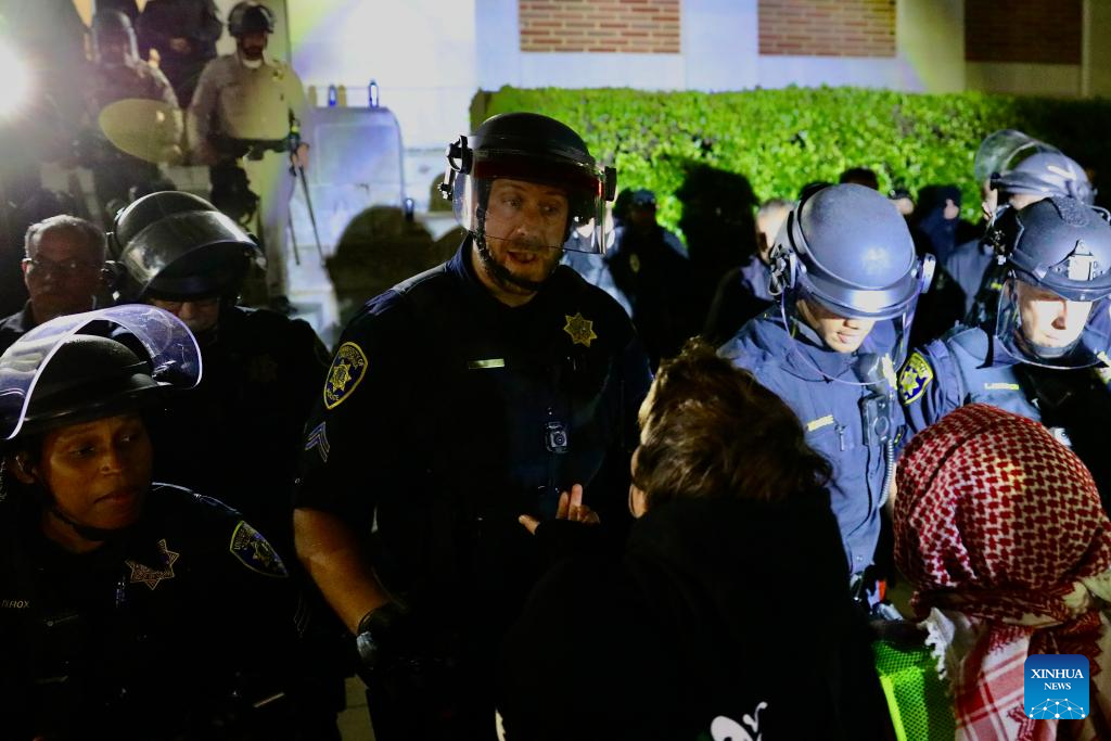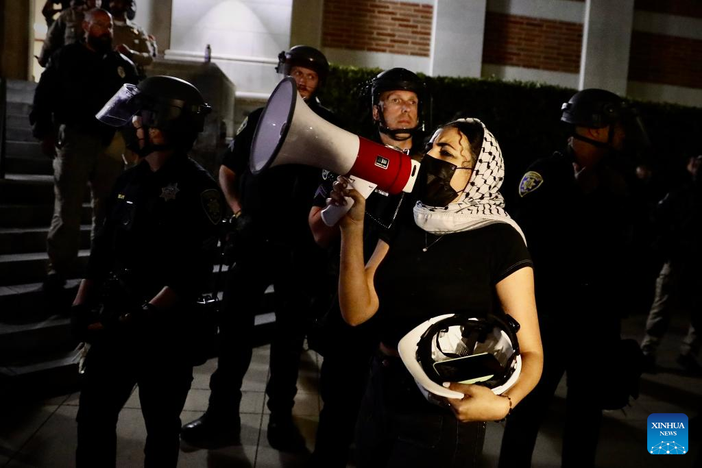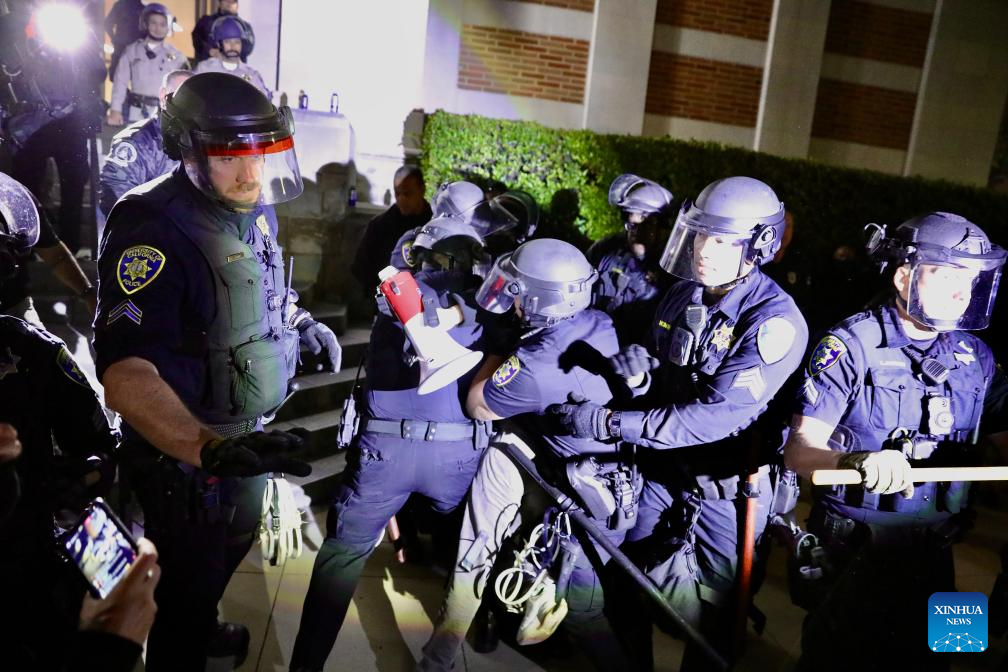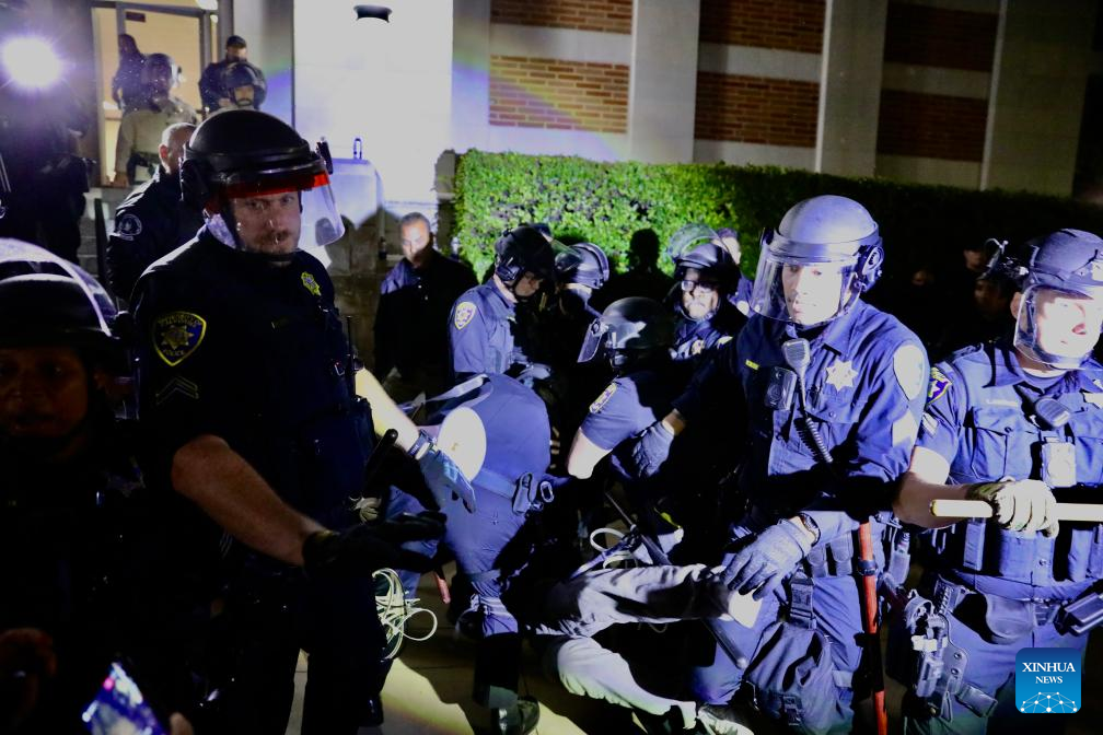 LOS ANGELES, June 11 (Xinhua) -- Police arrested about 25 protesters at the University of California, Los Angeles (UCLA), in the U.S. state of California Monday night after they set up a new campus encampment in support of the Palestinians amid the ongoing Israel-Hamas conflict in Gaza.