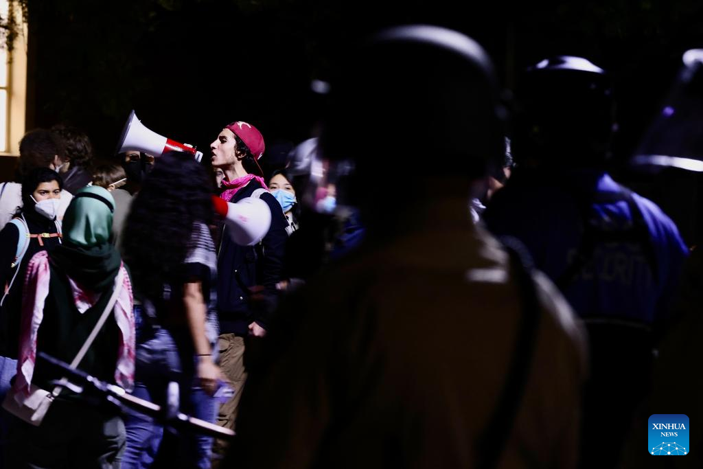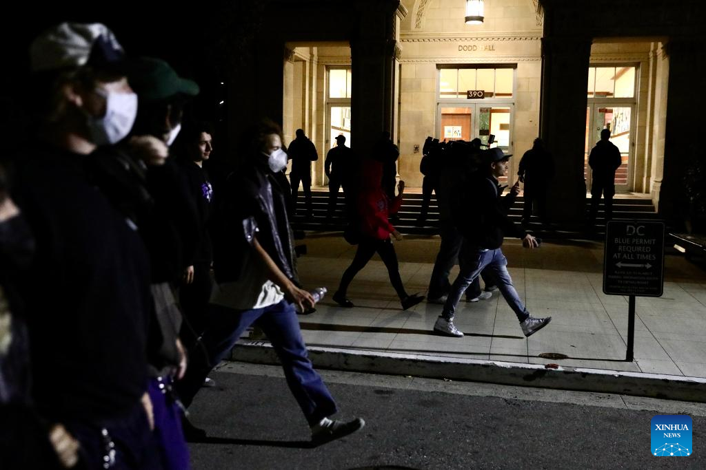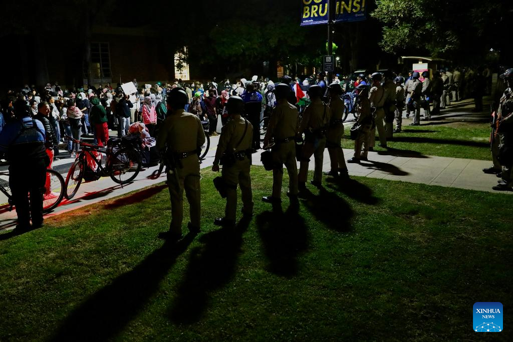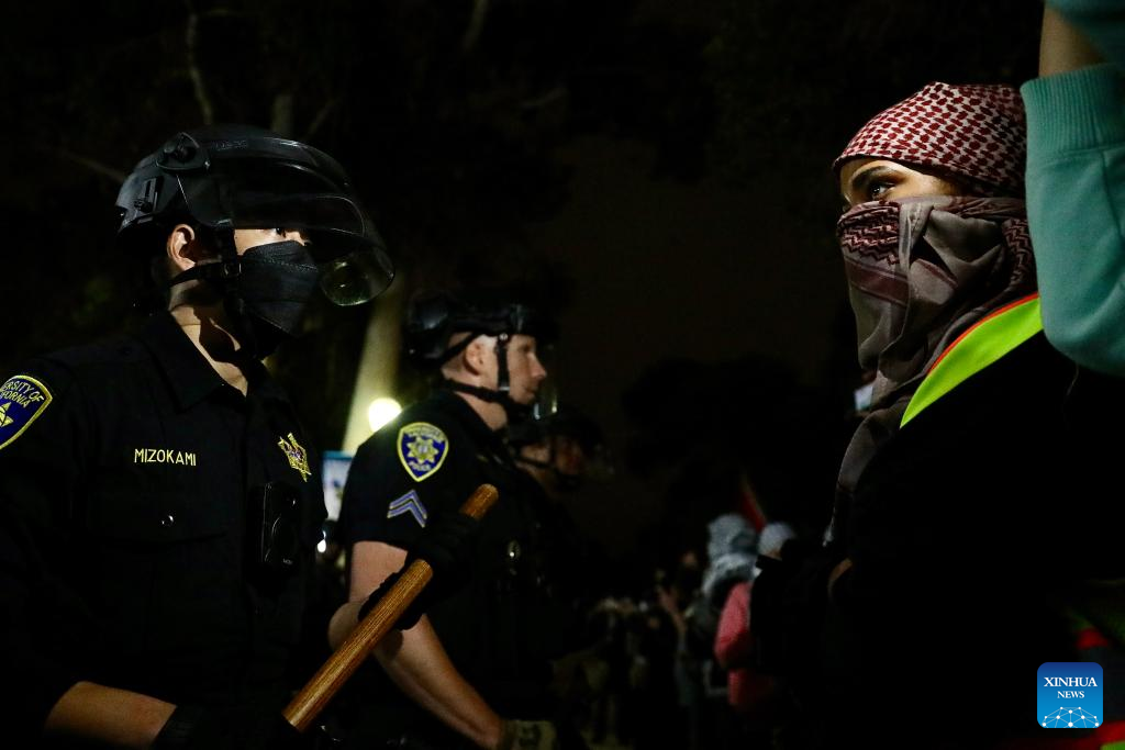 LOS ANGELES, June 11 (Xinhua) -- Police arrested about 25 protesters at the University of California, Los Angeles (UCLA), in the U.S. state of California Monday night after they set up a new campus encampment in support of the Palestinians amid the ongoing Israel-Hamas conflict in Gaza.