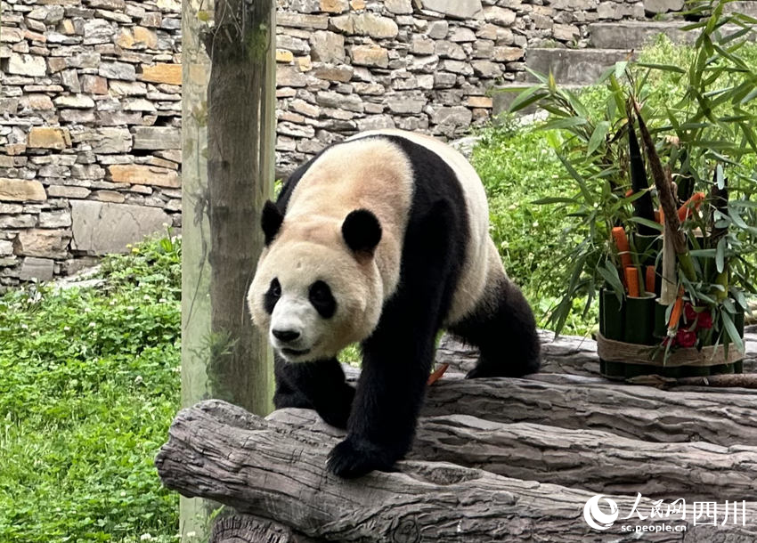 Fu Bao adapts well to the new environment at the Shenshuping giant panda base of the China Conservation and Research Center for the Giant Panda in southwest China's Sichuan Province. (People's Daily Online/Wang Bo)
