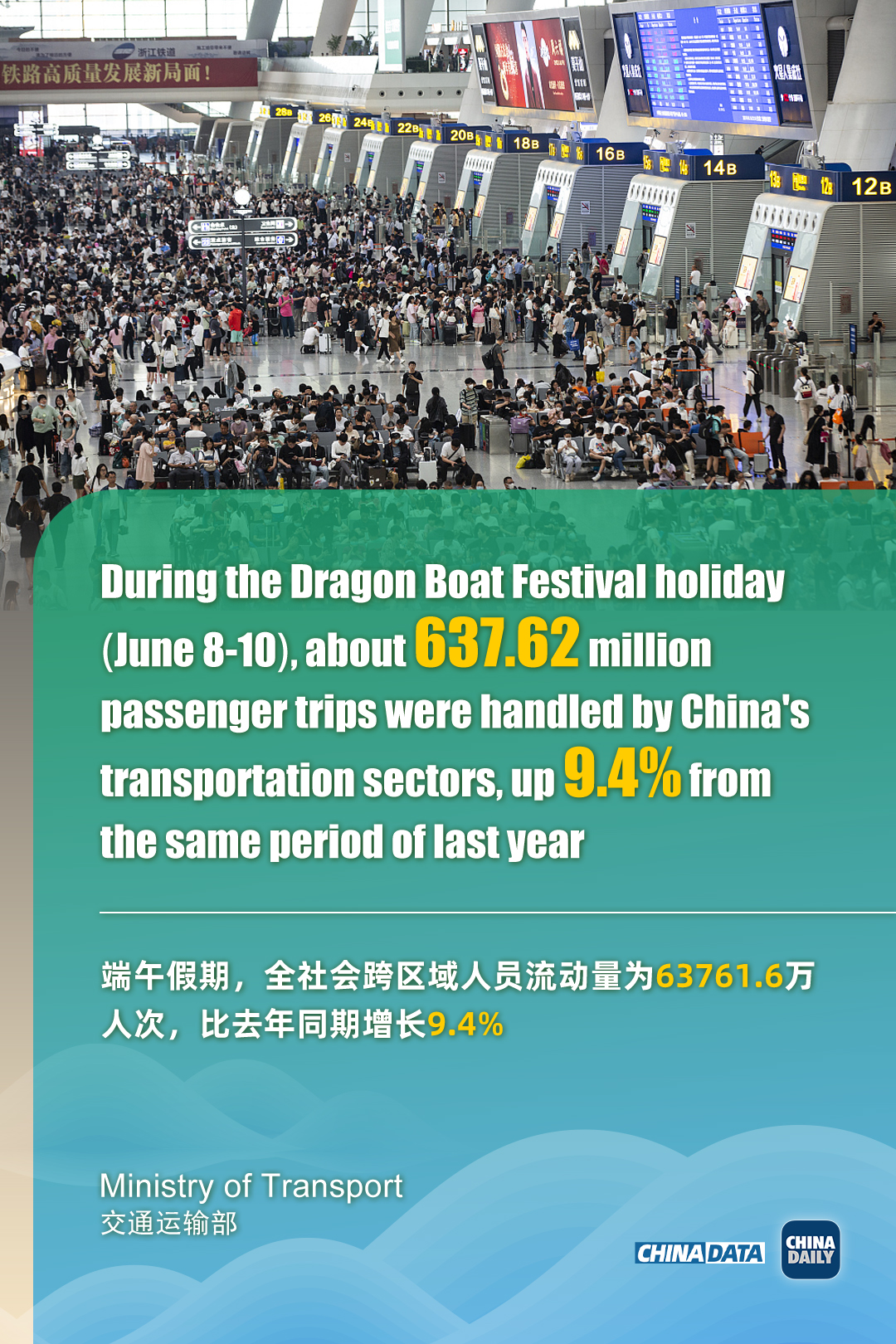 China's consumption in tourism, catering, retail, and entertainment rose during the three-day Dragon Boat Festival holiday that ended on Monday, underscoring the country's economic vitality and resilience.