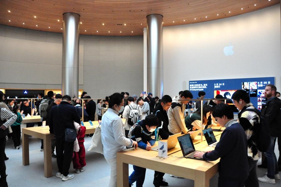 People visit Asia's largest Apple store in Shanghai. (Photo from Yan Daming/People's Daily Online)