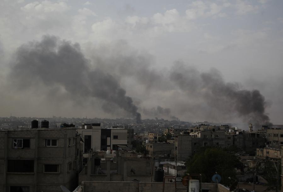 Smoke rises in Rafah city in the southern Gaza Strip, May 28, 2024. (Photo by Khaled Omar/Xinhua)
