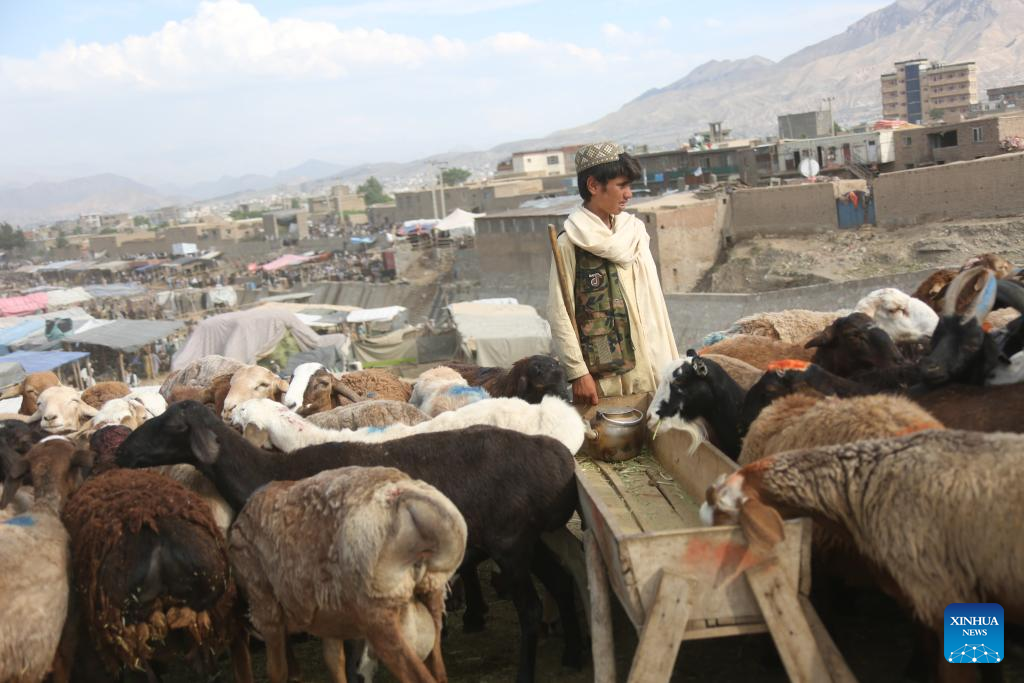 This photo shows a livestock market before Eid al-Adha in Kabul, the capital of Afghanistan, June 16, 2024. TO GO WITH "Feature: Afghanistan preparing to celebrate Eid al-Adha amid economic hardship" (Photo by Saifurahman Safi/Xinhua)