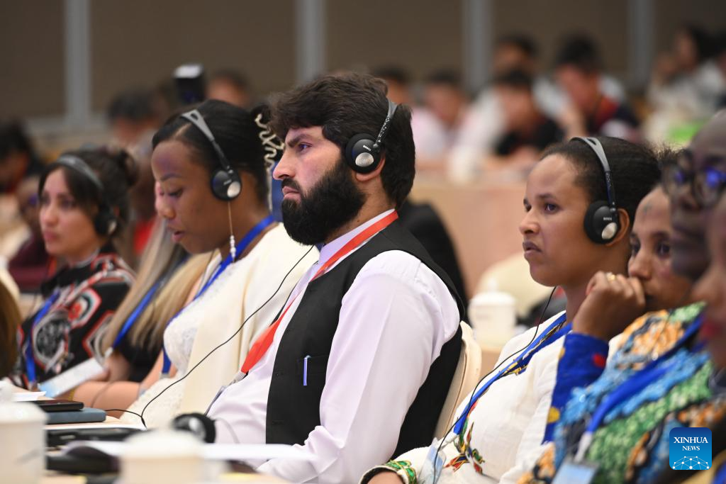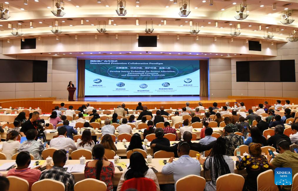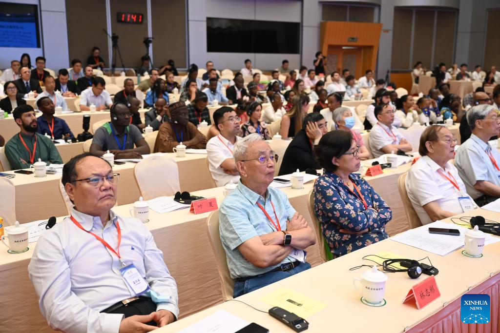 Guests attend a seminar on development of Juncao industry in Fuzhou, southeast China's Fujian Province, June 16, 2024. Representatives from 19 countries and regions including Rwanda, Papua New Guinea, and Fiji, as well as more than 200 Chinese experts, scholars, and business representatives attended the meeting.