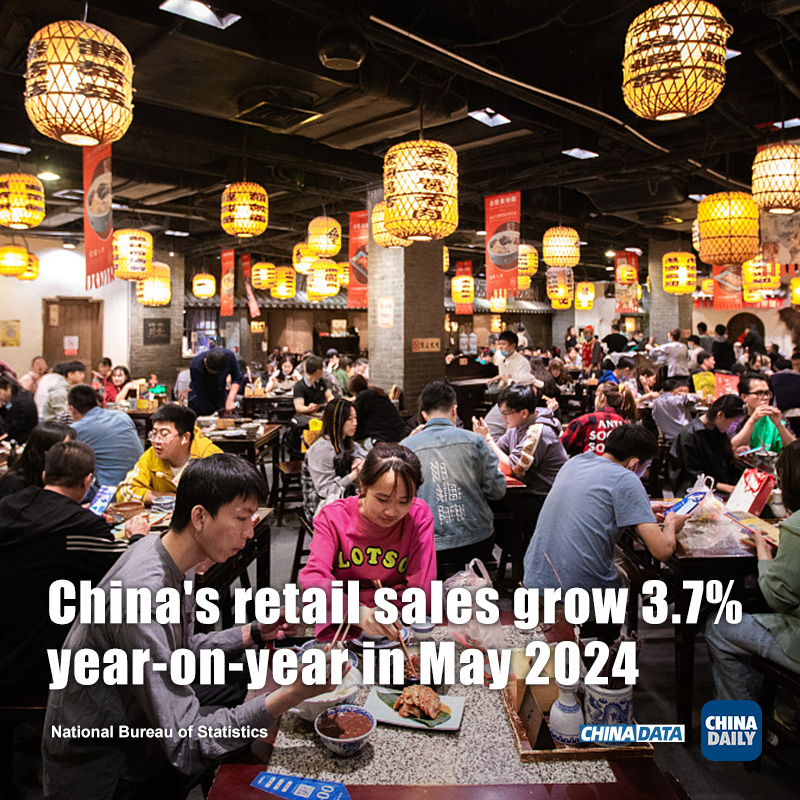 Retail sales, a key measurement of consumer spending, rose 3.7 percent year-on-year in May versus the 2.3 percent rise in April.