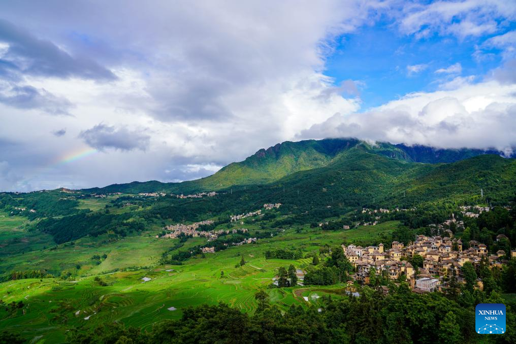 This photo taken on June 14, 2024 shows a view of Hani terraced fields in Yuanyang County of Honghe Hani and Yi Autonomous Prefecture, southwest China's Yunnan Province. (Xinhua/Wang Jingyi)