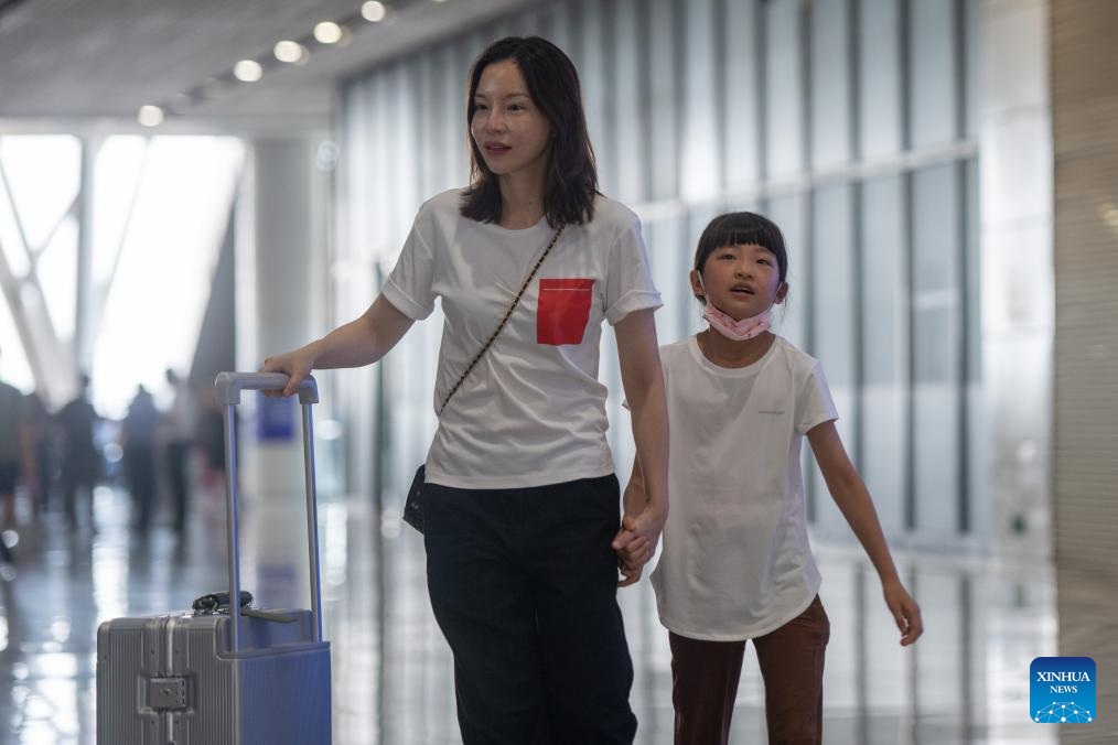 Passengers prepare to board G875 bullet train bound for Shenzhen at Wuhan Railway Station in Wuhan, central China's Hubei Province, June 15, 2024. The Fuxing bullet trains on the Wuhan-Guangzhou section of the Beijing-Guangzhou high-speed railway started operating at a speed of 350 km/h on Saturday. As the backbone of the high-speed rail network in China, the 2,298-km Beijing-Guangzhou high-speed railway started normal operation at a speed of 350 km/h for Fuxing bullet trains on the whole line. (Xinhua/Wu Zhizun)
