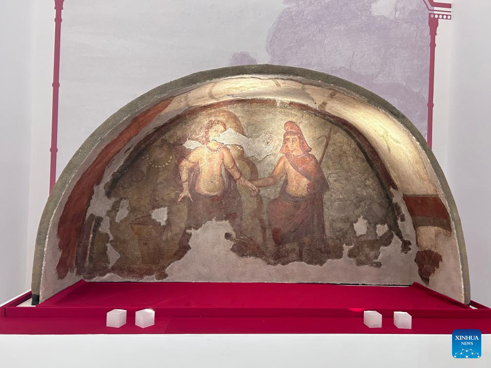 A fresco depicting Perseus and Andromeda is displayed at the Hunan Museum in Changsha, central China's Hunan Province, June 13, 2024. (Xinhua/Zhang Yujie)
