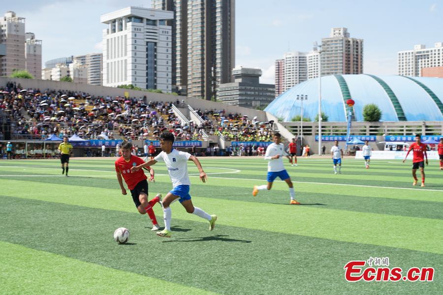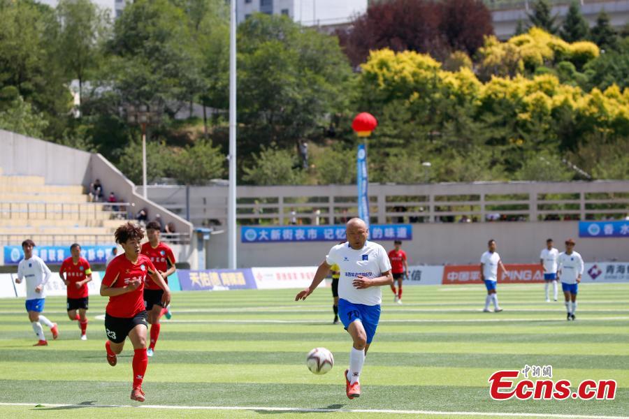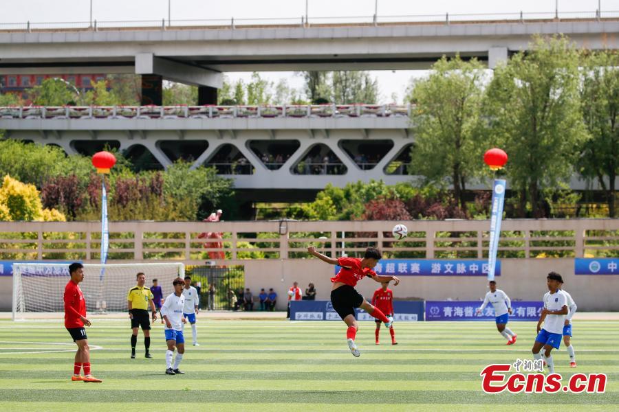 Xining Xiadu team plays against Haixi Chaidamu Goji team in a Super League in Xining, capital of Qinghai Province on June 16. (Photo: China News Service/ Ma Mingyan)