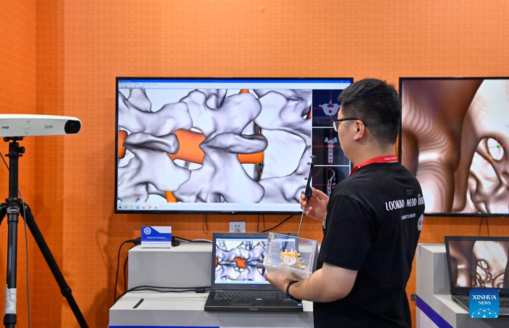 A staff member demonstrates the operation of a surgical navigation system during the 2024 Changchun International Optoelectronic Expo in Changchun, northeast China's Jilin Province, June 18, 2024.