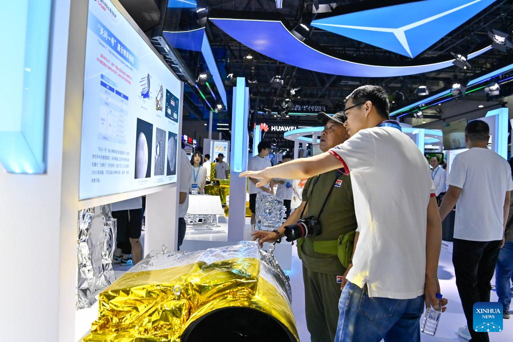 Visitors look at the model of Tianwen-1 high-resolution imaging camera during the 2024 Changchun International Optoelectronic Expo in Changchun, northeast China's Jilin Province, June 18, 2024.