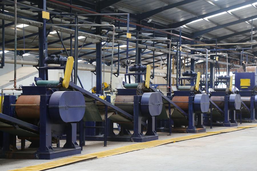 This photo taken on June 10, 2024 shows the machines in the Mainland Group's rare rubber factory in the suburbs of Dabou, a town in southern Cote d'Ivoire. (Xinhua/Zhang Jian)