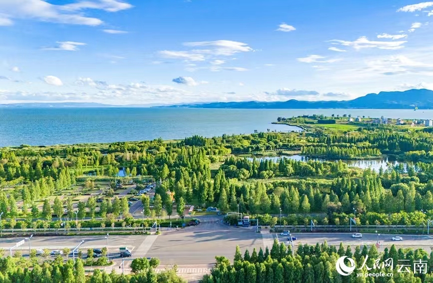 Photo taken on June 13, 2024 shows the view of wetlands along the Dianchi Lake in Kunming, capital city of southwest China’s Yunnan Province. (People’s Daily Online/Hu Zunhui)