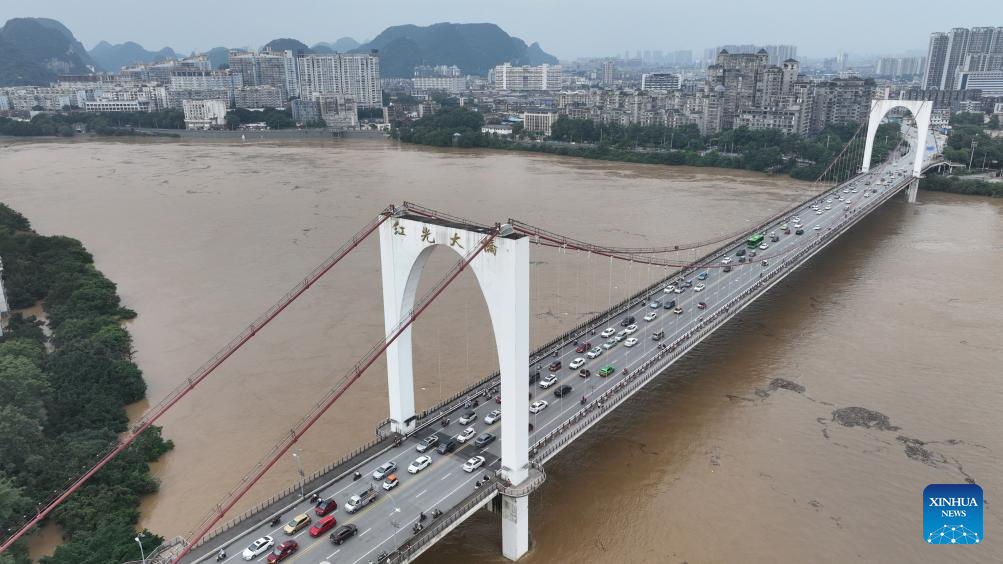 Water level of Liujiang River rises to 86.3 meters in China's Guangxi