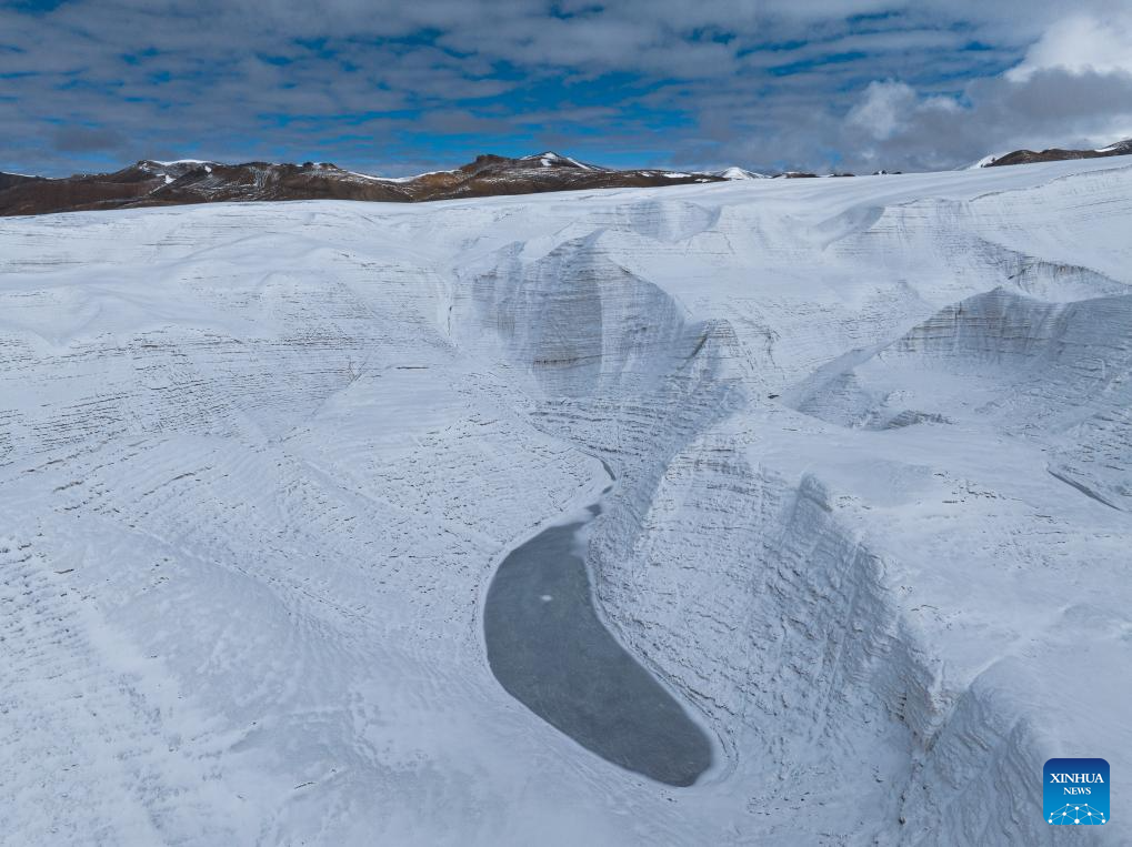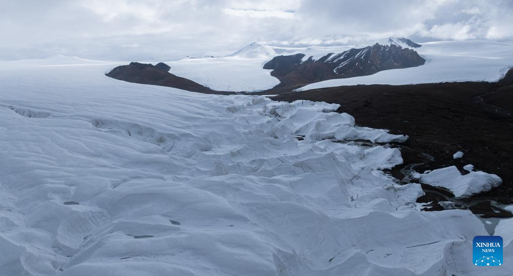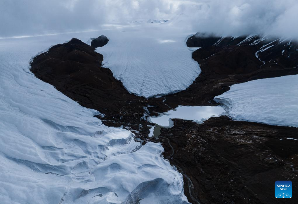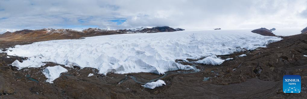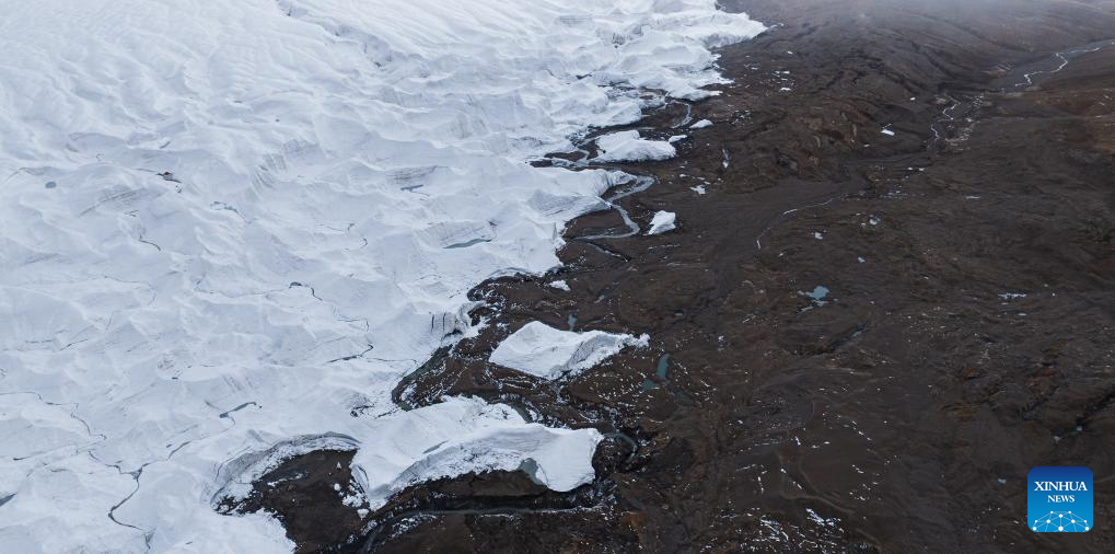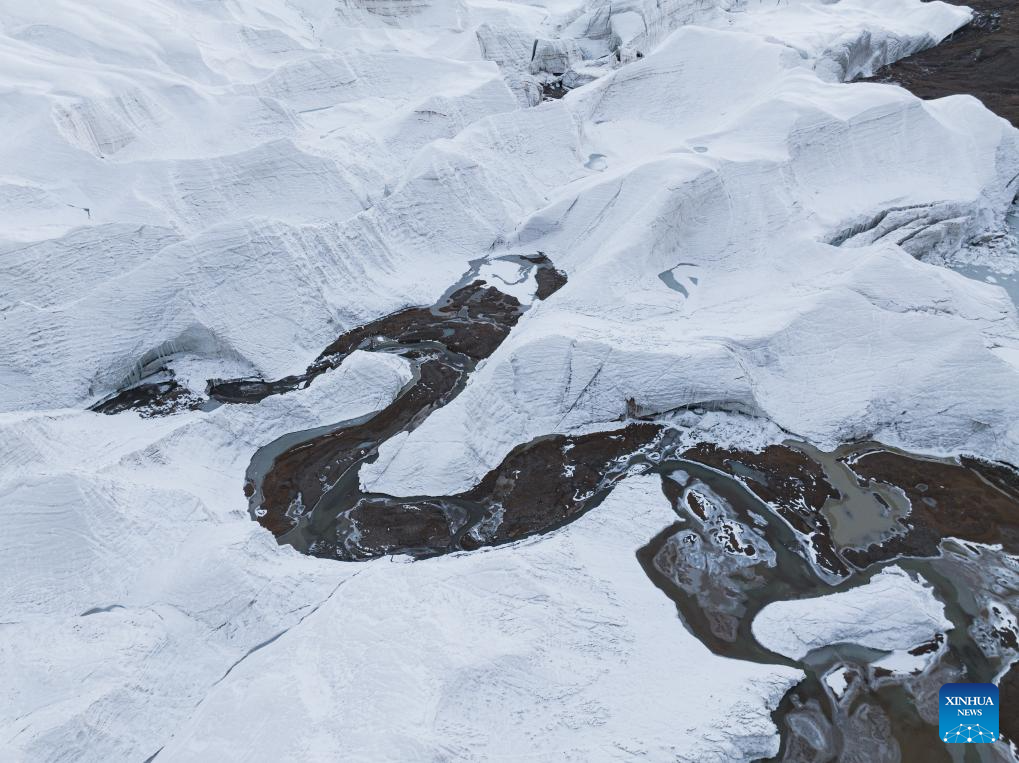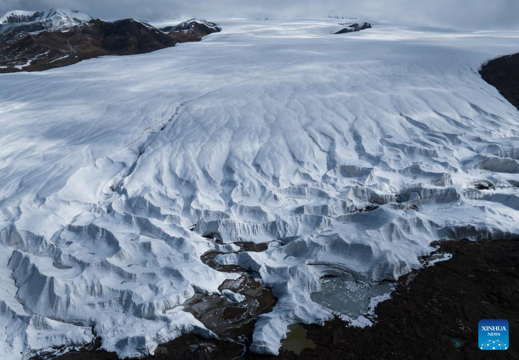 An aerial drone photo taken on June 20, 2024 shows a view of Purog Kangri Glacier in Shuanghu County, Nagqu, southwest China's Xizang Autonomous Region. (Xinhua/Tenzin Nyida)