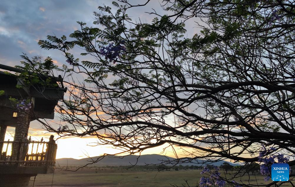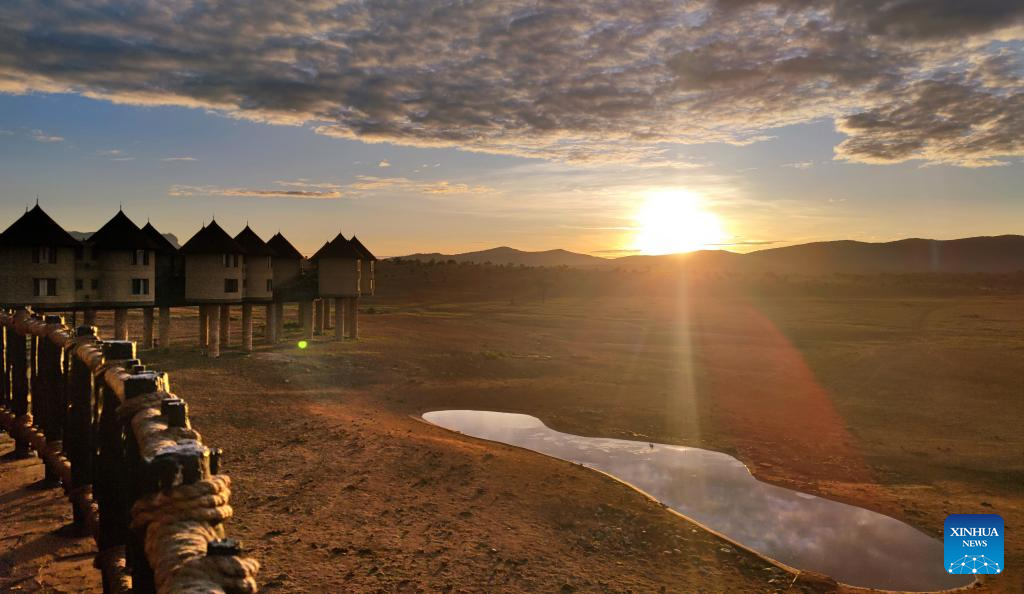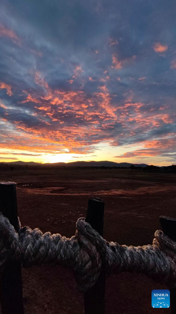 This photo taken with a mobile phone shows the sunrise in Taita Hills Wildlife Sanctuary, Taita-Taveta County, Kenya, Oct. 28, 2023. (Xinhua/Dong Jianghui)
