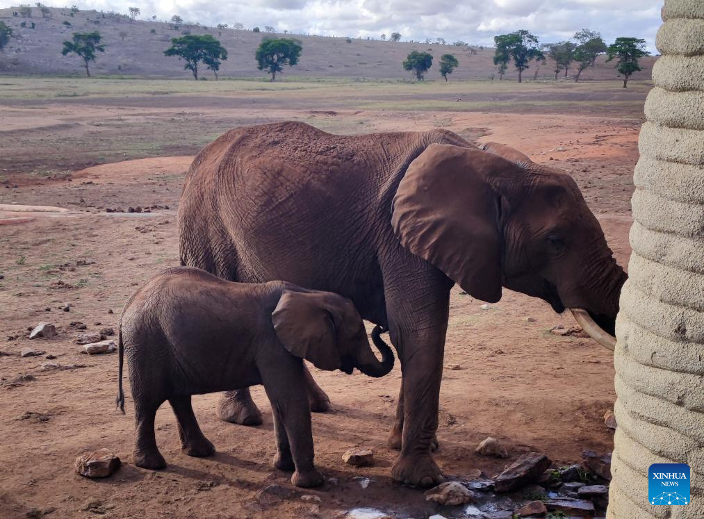 This photo taken with a mobile phone shows elephants in Taita Hills Wildlife Sanctuary, Taita-Taveta County, Kenya, Oct. 28, 2023. (Xinhua/Dong Jianghui)
