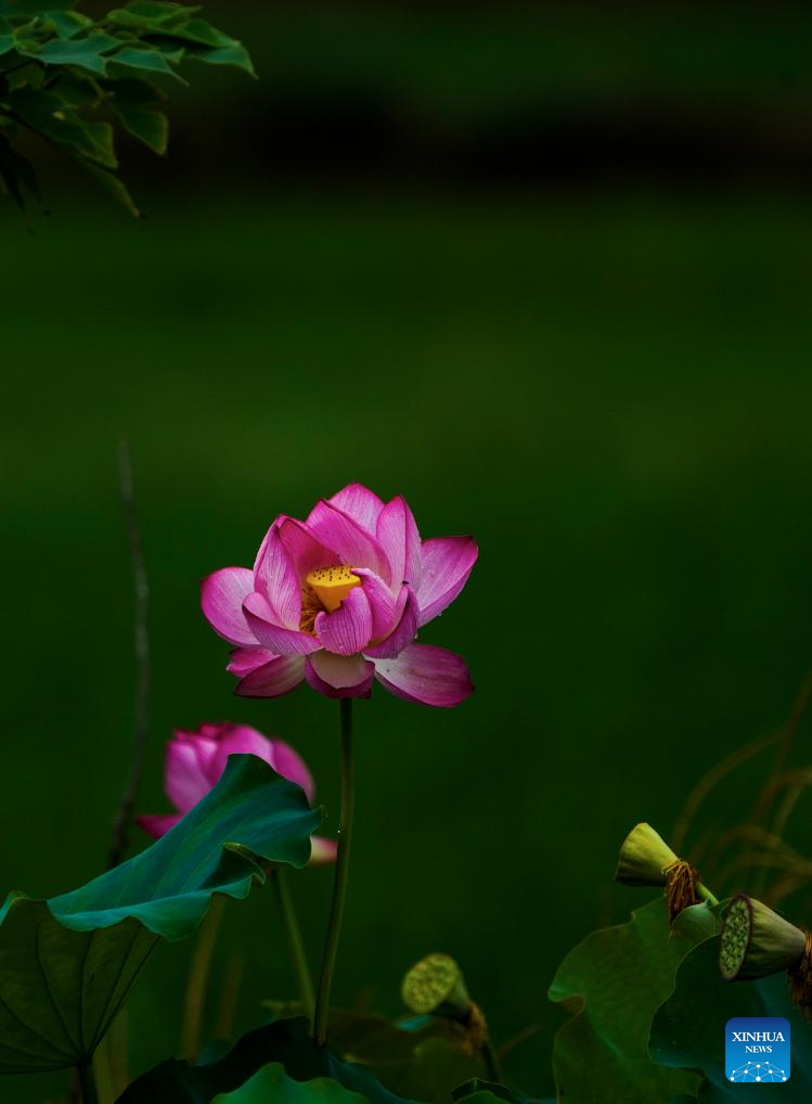 This photo taken on June 21, 2024 shows lotus flowers at a park in Shijiazhuang City, north China's Hebei Province. (Photo by Chen Qibao/Xinhua)