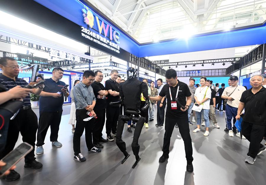 Xiaoqi, a humanoid robot, is pictured at the World Intelligence Expo 2024 in north China's Tianjin, June 21, 2024. (Xinhua/Sun Fanyue)