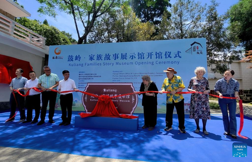 People attend the opening ceremony of Kuliang Families Story Museum in Kuliang, Fuzhou, southeast China's Fujian Province, June 22, 2024. Kuliang, or Guling in Mandarin, is situated on the outskirts of Fuzhou. Since 1886, people from more than 20 countries, including Britain, France and the United States, began to build villas in Yixia Village in Kuliang to spend the summer, fostering a harmonious coexistence with local villagers and thus contributing to the enduring "Kuliang stories." (Xinhua/Wei Peiquan)