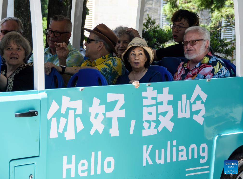 Foreign guests take a ride in Kuliang, Fuzhou, southeast China's Fujian Province, June 22, 2024. Kuliang, or Guling in Mandarin, is situated on the outskirts of Fuzhou. Since 1886, people from more than 20 countries, including Britain, France and the United States, began to build villas in Yixia Village in Kuliang to spend the summer, fostering a harmonious coexistence with local villagers and thus contributing to the enduring "Kuliang stories." (Xinhua/Wei Peiquan)