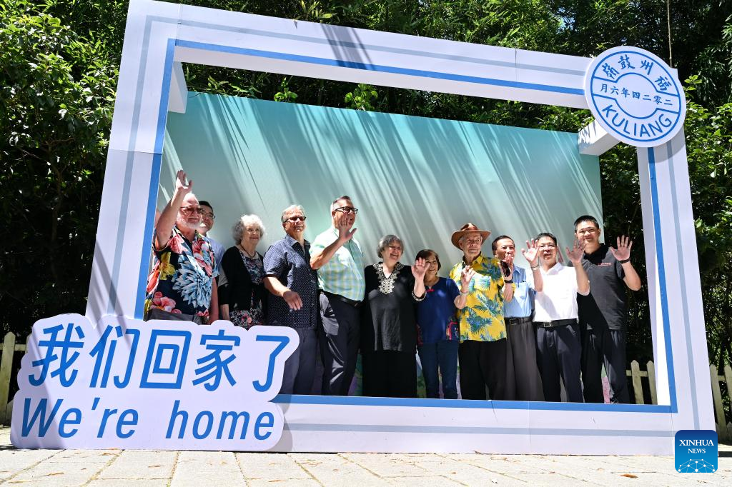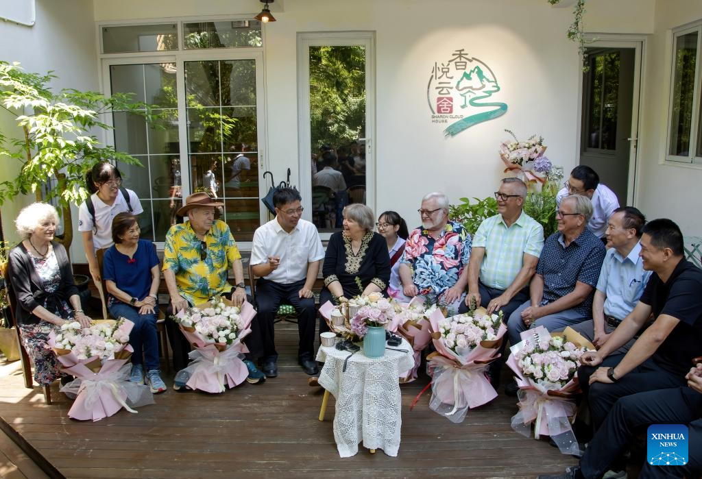 "Kuliang friends," a group of American families and their descendants who once lived in Kuliang, chat with each other in Kuliang, Fuzhou, southeast China's Fujian Province, June 22, 2024. Kuliang, or Guling in Mandarin, is situated on the outskirts of Fuzhou. Since 1886, people from more than 20 countries, including Britain, France and the United States, began to build villas in Yixia Village in Kuliang to spend the summer, fostering a harmonious coexistence with local villagers and thus contributing to the enduring "Kuliang stories." (Xinhua/Wei Peiquan)