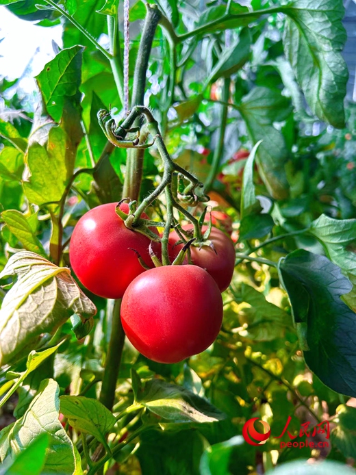 Photo shows ripe tomatoes at a vegetable plantation in Wangdaifu village, Shawo township, Qixian county, Kaifeng city, central China's Henan Province. (People's Daily Online/Huo Yaping)