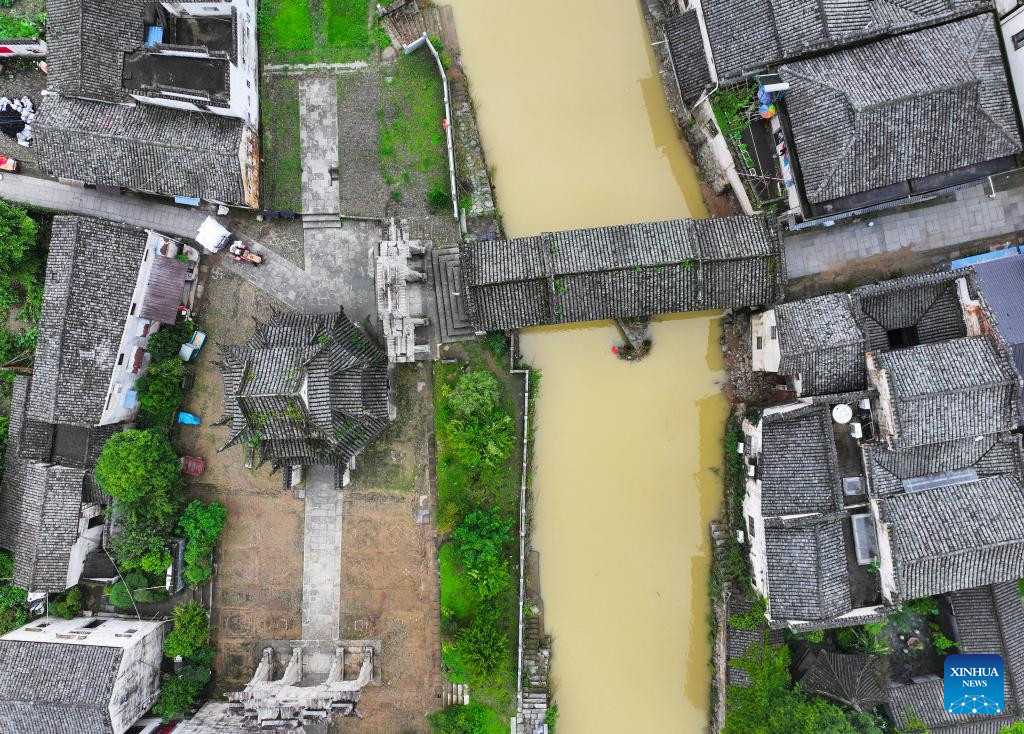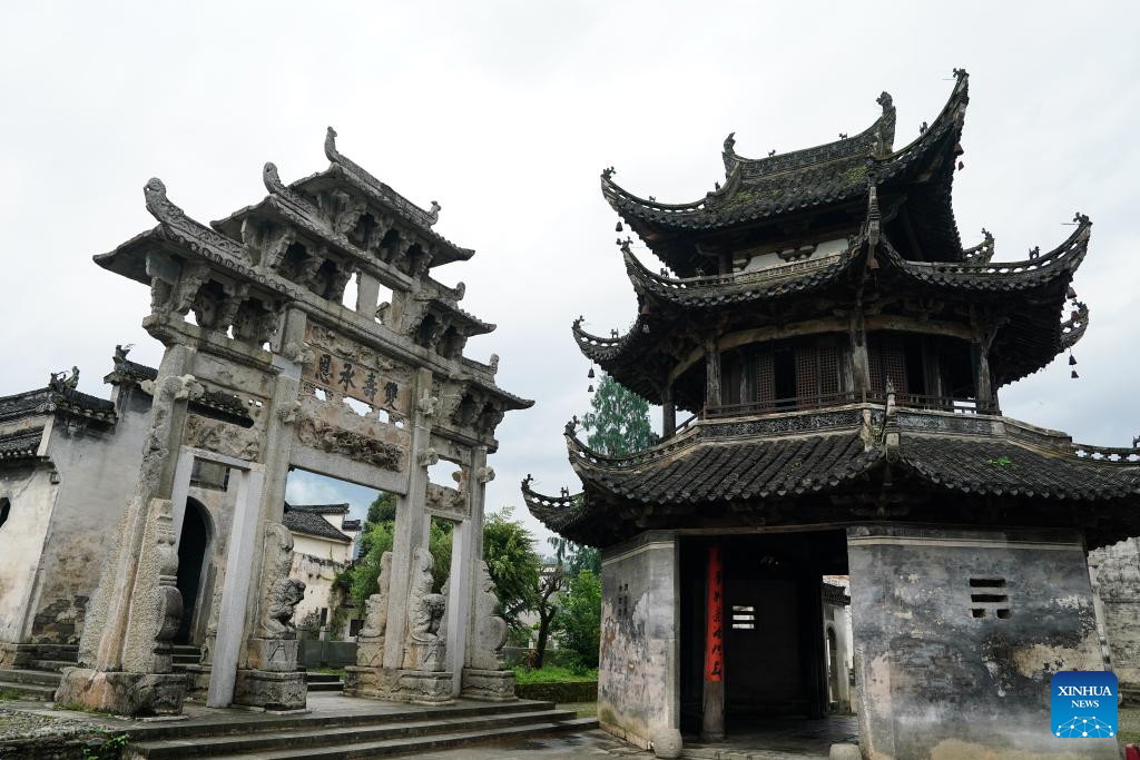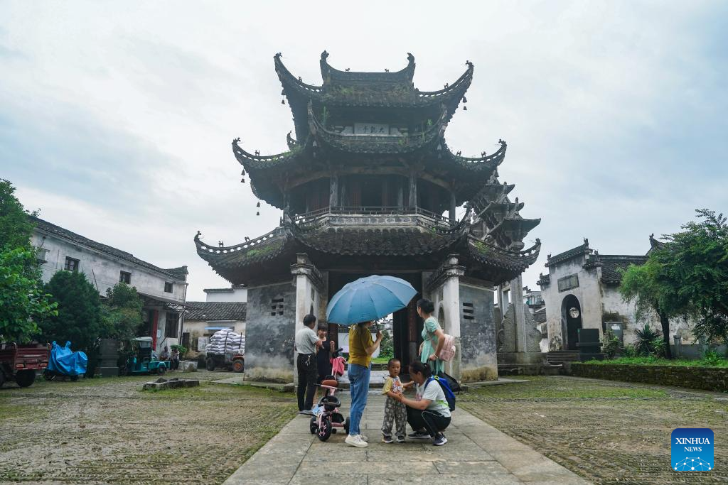 This photo taken on June 22, 2024 shows an ancient pavilion in Xucun Village of Xucun Town, Huangshan City, east China's Anhui Province. The city of Huangshan raised the emergency response level for flood control to Level II on Thursday. The precipitation in the city's Xucun Village has surpassed 520 mm since Wednesday. Up to now, the village's 16 national level cultural relics protection sites are in good condition. (Xinhua/Du Yu)