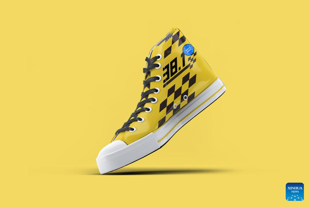 This image shows a sneaker designed by Chinese carmaker SAIC Motor to mark the European Commission's plan to impose provisional tariffs on China-made electric vehicles. Rather than being daunted by the European Commission's plan to impose provisional tariffs on China-made electric vehicles, Chinese carmaker SAIC Motor has found inspiration in the decision and designed an array of creative products in response. (Xinhua)