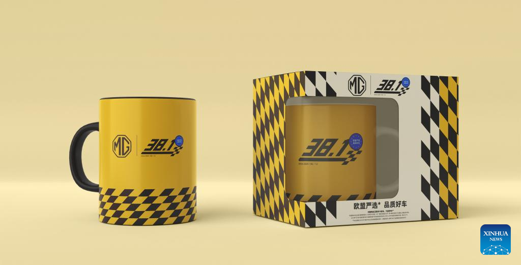 This image shows cups designed by Chinese carmaker SAIC Motor to mark European Commission's plan to impose provisional tariffs on China-made electric vehicles. Rather than being daunted by the European Commission's plan to impose provisional tariffs on China-made electric vehicles, Chinese carmaker SAIC Motor has found inspiration in the decision and designed an array of creative products in response. (Xinhua)