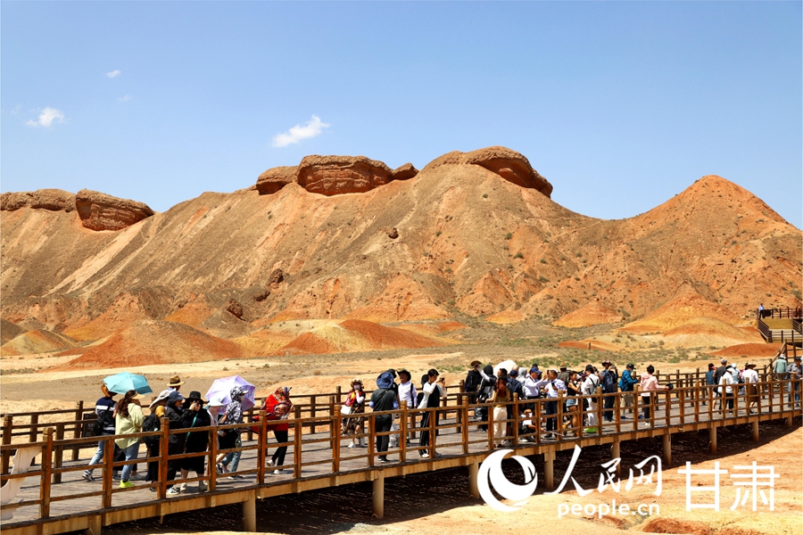 Tourists flock to the Colorful Danxia Scenic Spot in Zhangye, northwest China’s Gansu Province. (People’s Daily Online/Huang Fan)