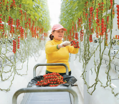 With an annual production of more than 250 tonnes of cherry tomatoes, the greenhouse provides jobs for over 30 nearby villagers every year, with their per capita annual income reaching 50,000 yuan.