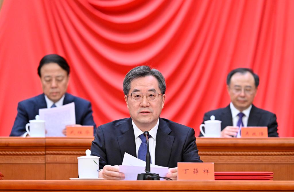 Ding Xuexiang announces the award decision at a meeting conflating the national sci-tech conference, the national science and technology award conference, and the general assemblies of the members of the Chinese Academy of Sciences (CAS) and the Chinese Academy of Engineering (CAE) at the Great Hall of the People in Beijing, capital of China, June 24, 2024. (Xinhua/Yin Bogu)