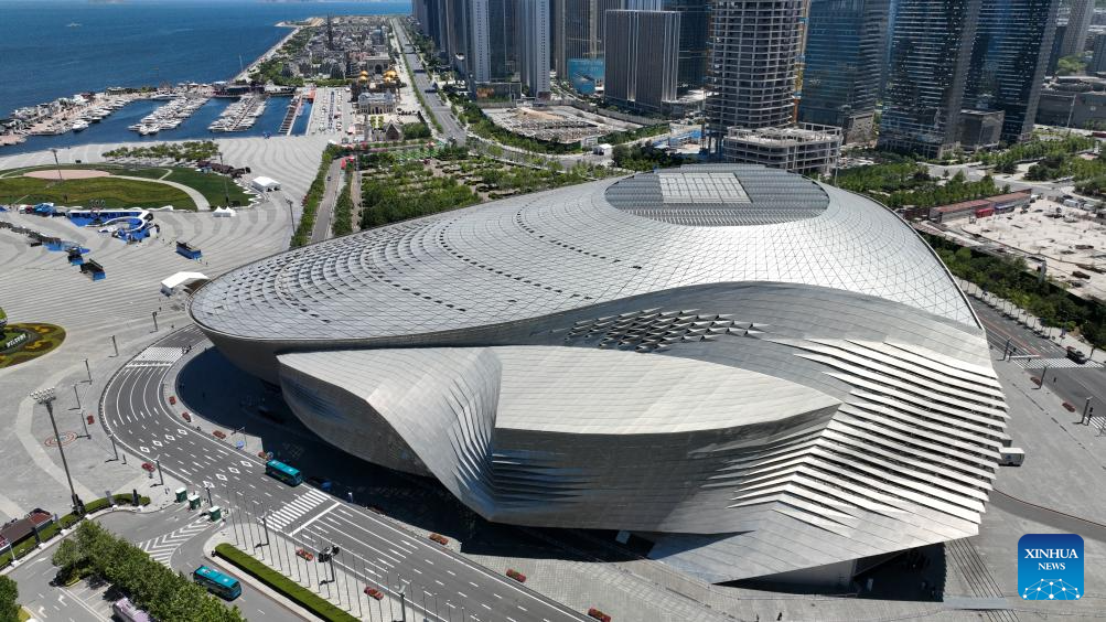 An aerial drone photo taken on June 24, 2024 shows the Dalian International Conference Center, venue of the 2024 Summer Davos, in Dalian, northeast China's Liaoning Province. (Xinhua/Yang Qing)