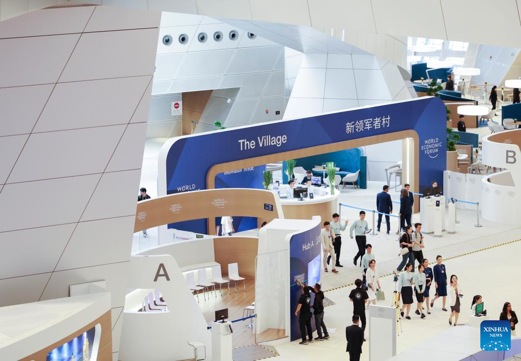 This photo taken on June 24, 2024 shows "The Village" area at the Dalian International Conference Center, venue of the 2024 Summer Davos, in Dalian, northeast China's Liaoning Province. (Xinhua/Li Gang)