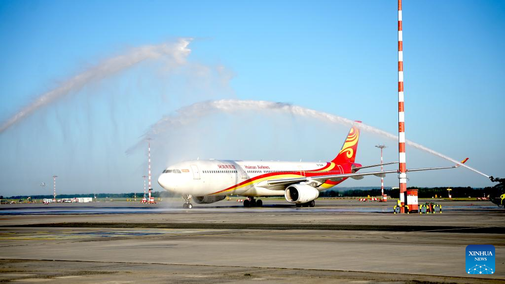 PRAGUE, June 24 (Xinhua) -- Direct flights between the capital cities of China and the Czech Republic officially resumed on Monday, with the arrival of a Hainan Airlines aircraft at the Prague Airport in the early morning after a 10-hour flight.