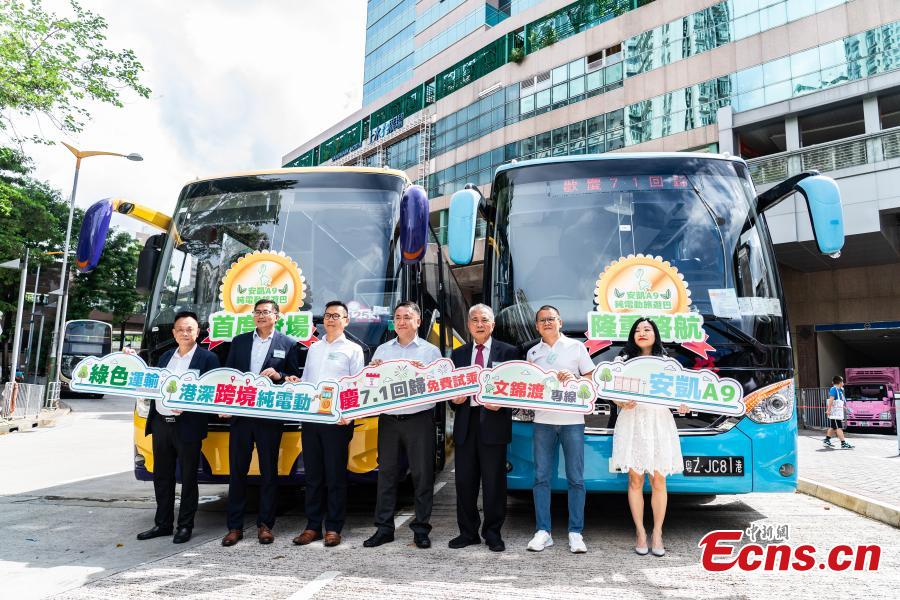 Free ride service will be provided from June 25 to July 24 after the first cross-border electric tourist coach between Hong Kong and Shenzhen commences on June 24. (Photo: China News Service/ Hou Yu)