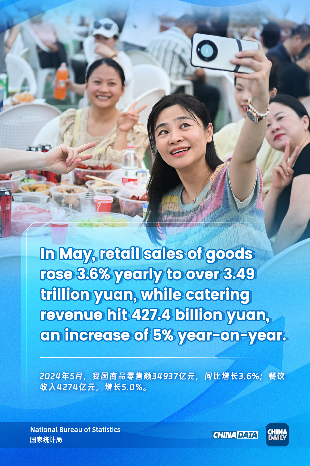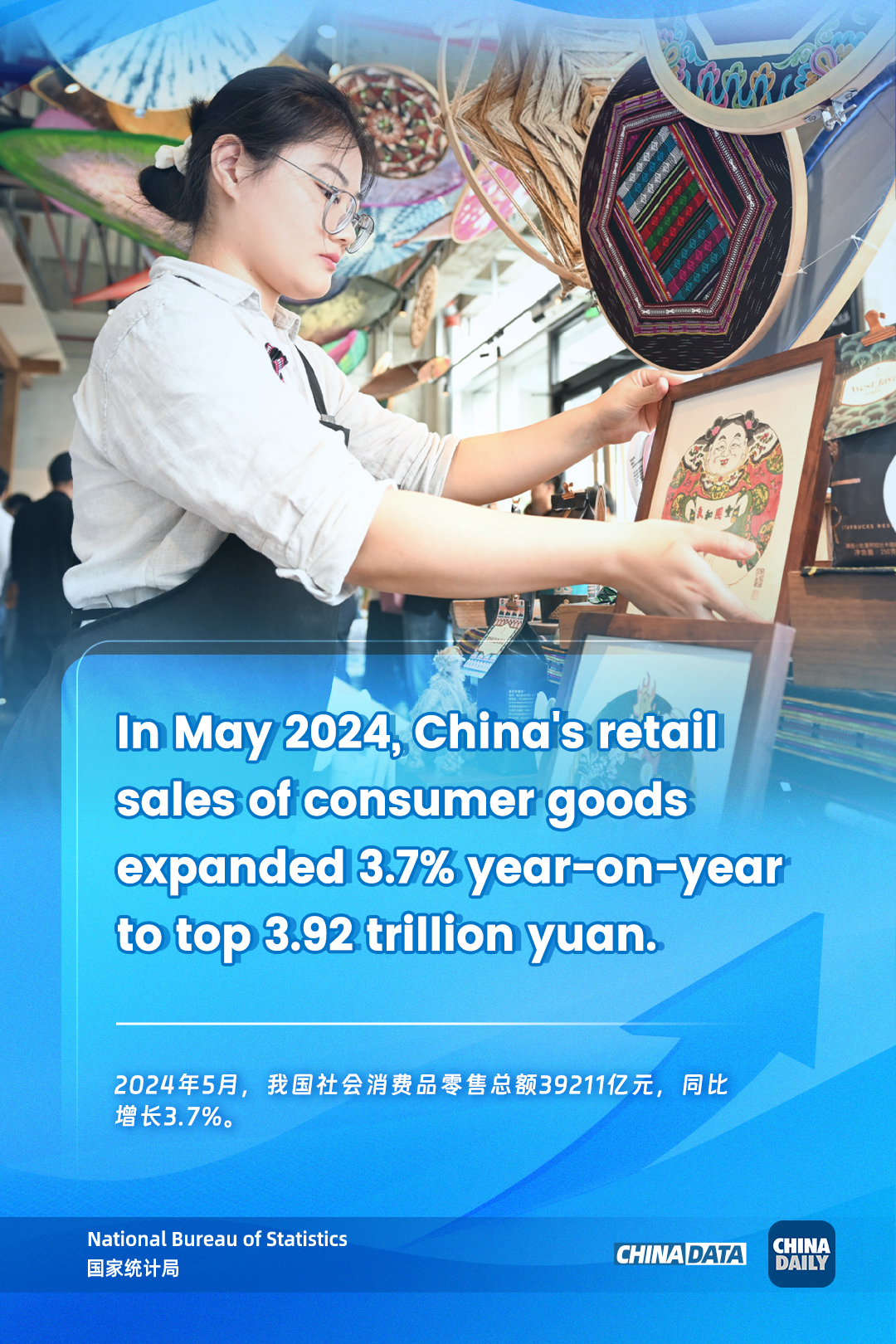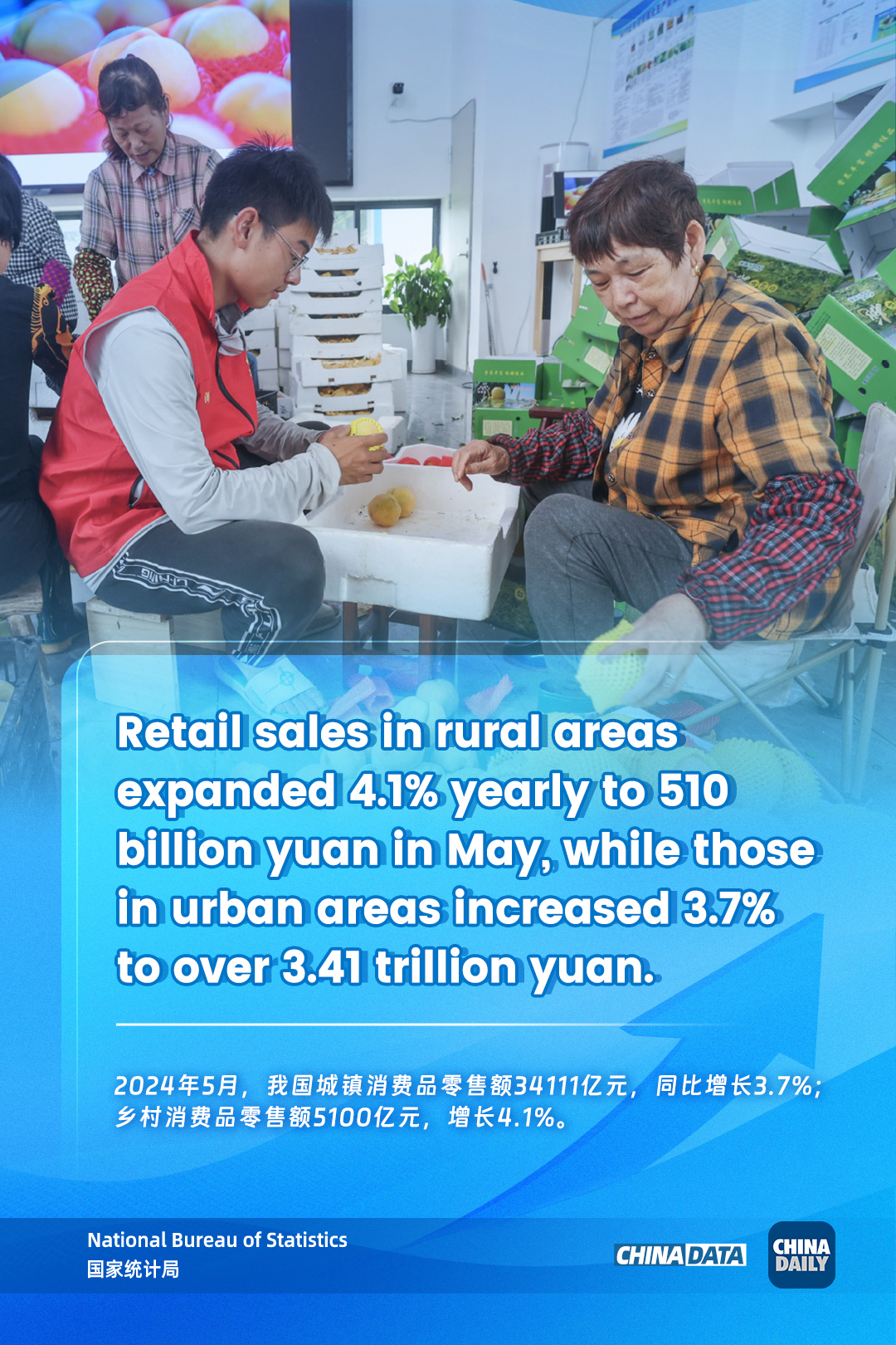 China's retail sales of consumer goods, a major indicator of the country's consumption strength, climbed 4.1 percent year-on-year in the first five months of this year, data from the National Bureau of Statistics showed.