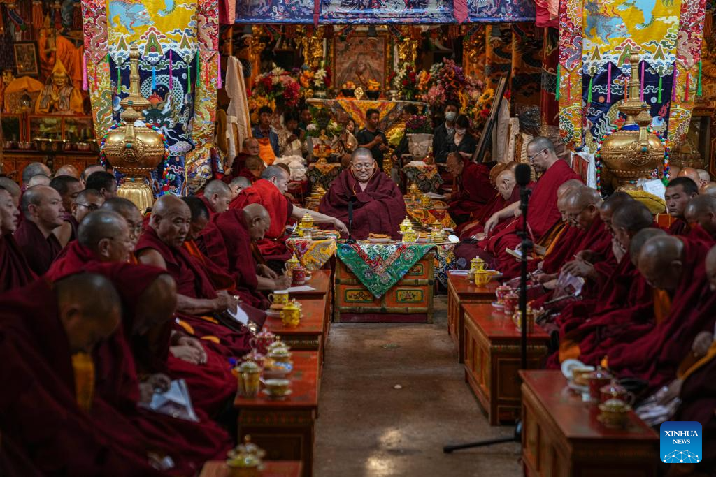 LHASA, June 25 (Xinhua) -- A total of 13 monks from multiple monasteries are in the process of completing a preliminary examination for the Geshe Lharampa, the highest academic degree in the exoteric teachings of the Gelug school of Tibetan Buddhism.