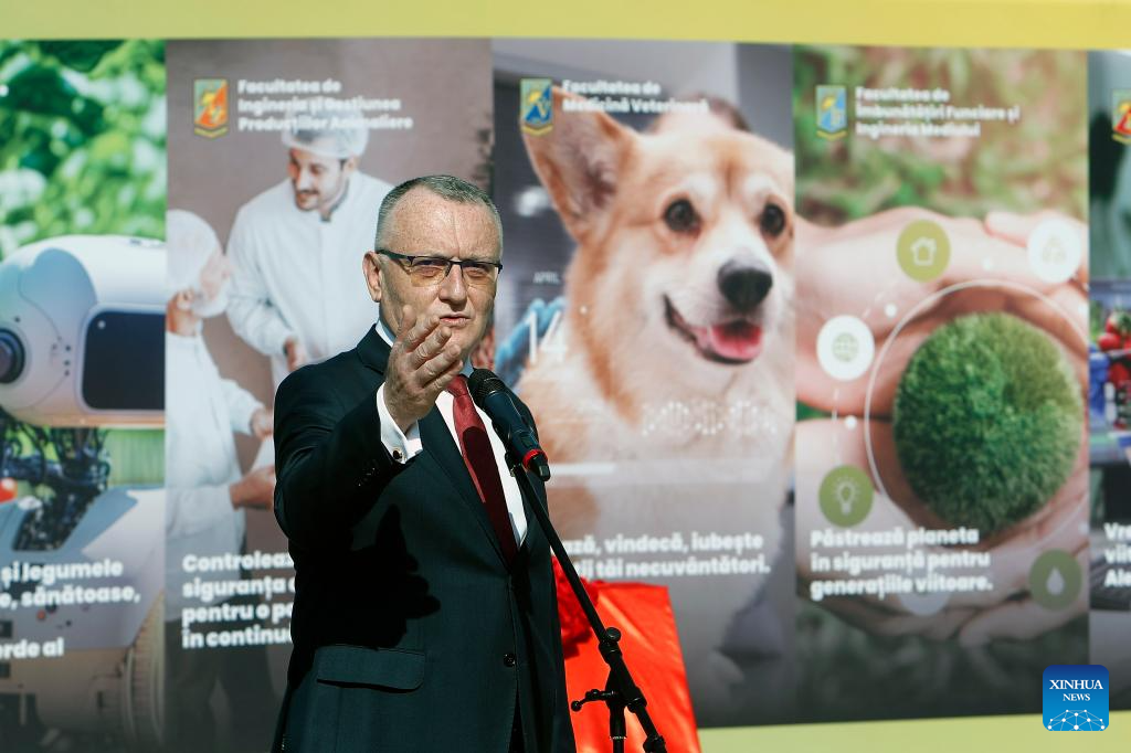 Sorin Cimpeanu, rector of the University of Agronomic Sciences and Veterinary Medicine, delivers a speech at the opening ceremony of the China-Romania Joint Laboratory for Cooperation in Agriculture in Bucharest, Romania, on June 25, 2024. The China-Romania Joint Laboratory for Cooperation in Agriculture was officially inaugurated on Tuesday at the University of Agronomic Sciences and Veterinary Medicine (UASVM) in Bucharest, aiming to enhance collaborative research in agricultural science and technological innovation. (Photo by Cristian Cristel/Xinhua)