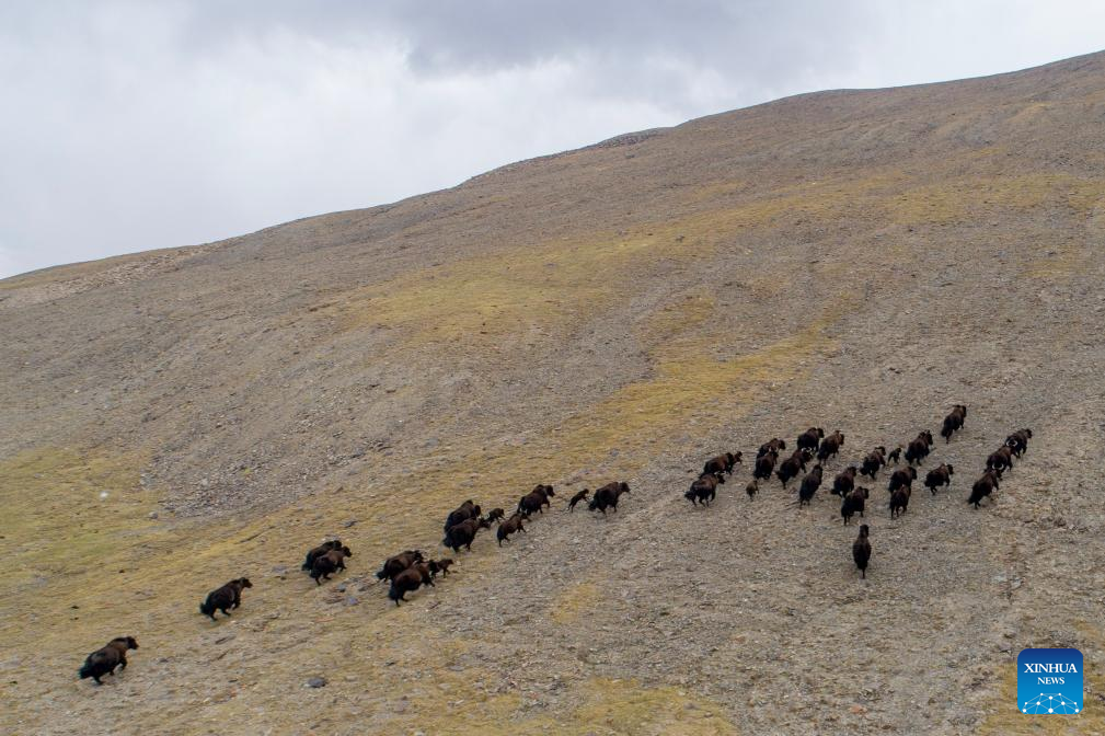 This photo taken on June 7, 2024 shows yaks in Xainza County of Nagqu City, southwest China's Xizang Autonomous Region. (Xinhua/Jigme Dorje)