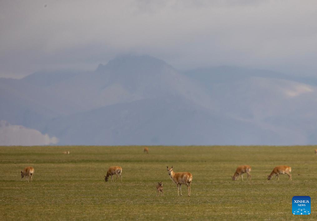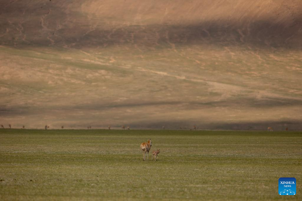 Tibetan antelopes are pictured in Xainza County of Nagqu City, southwest China's Xizang Autonomous Region, June 17, 2024. (Xinhua/Tenzing Nima Qadhup)