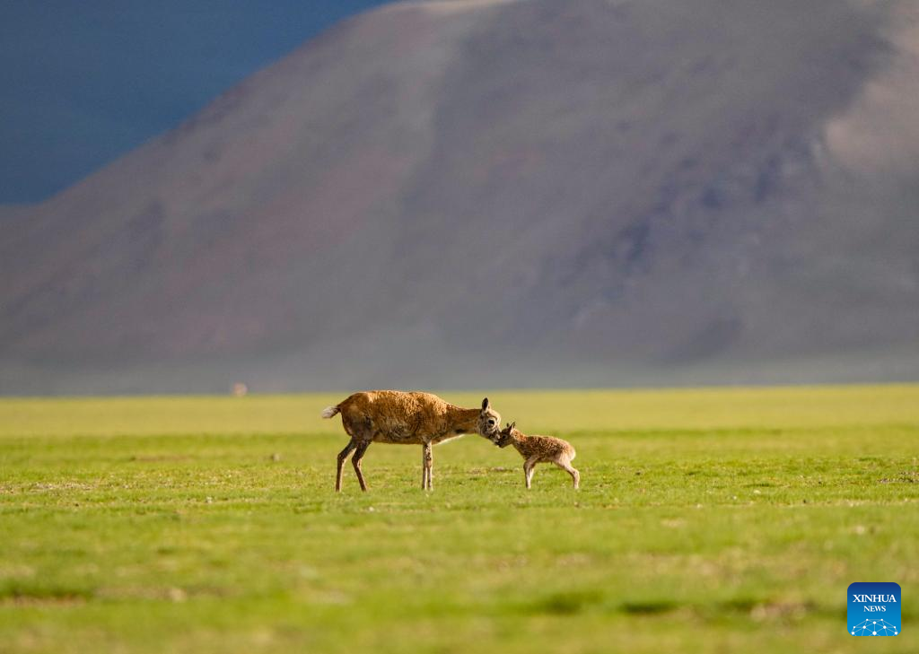 Tibetan antelopes are pictured in Xainza County of Nagqu City, southwest China's Xizang Autonomous Region, June 9, 2024. (Xinhua/Tenzing Nima Qadhup)