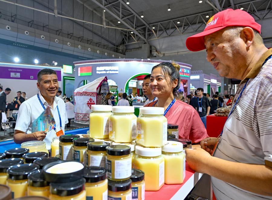 People purchase goods at the 8th China-Eurasia Expo in Urumqi, northwest China's Xinjiang Uygur Autonomous Region, June 26, 2024. (Xinhua/Li Renzi)