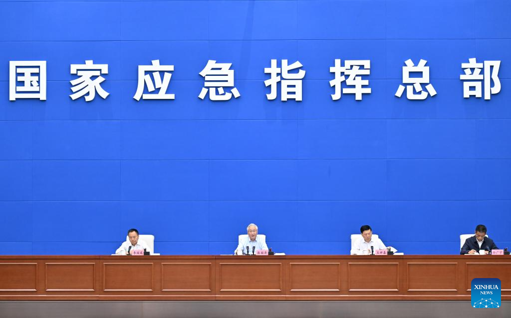 Chinese Vice Premier Zhang Guoqing, also a member of the Political Bureau of the Communist Party of China Central Committee, arranges flood prevention and disaster relief work at the national command headquarters for emergencies on June 26, 2024. (Xinhua/Yue Yuewei)